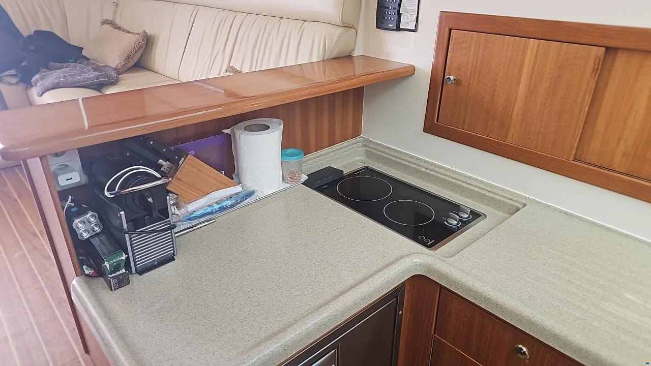 Cocina completa: Vitrocerámica, microondas, fregadero y nevera nueva (12-24V).
